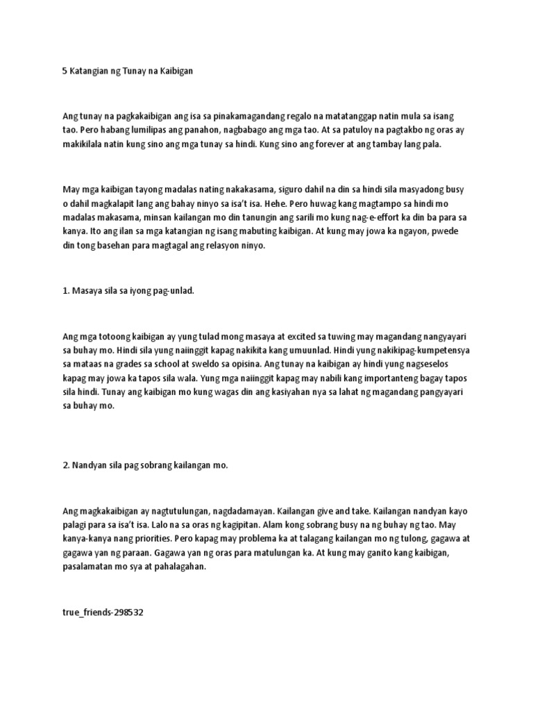 5 Katangian Ng Tunay Na Kaibigan Pdf